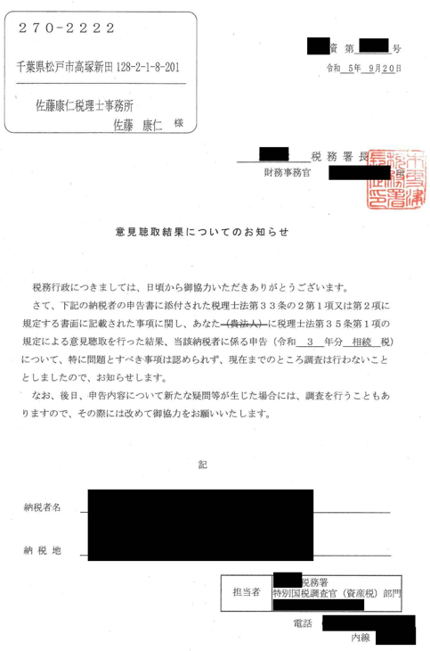 意見聴取の結果、税務調査に移行する場合もありますが、意見聴取による意見交換で調査が省略されることもあります。